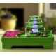 Fontaine avec un support allongé, avec des billes en verre et toit entassé, ressemblant à l'empilement des fleur de lotus.